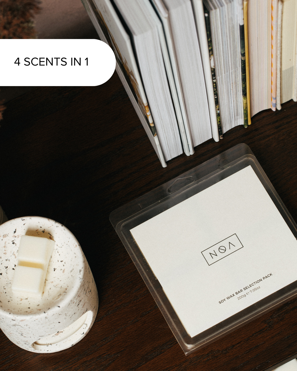 + Remove packaging and place 1-2 cubes of wax into an approved burner. Do not overflow or add too much.