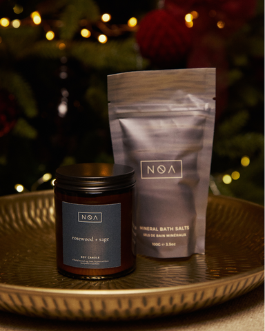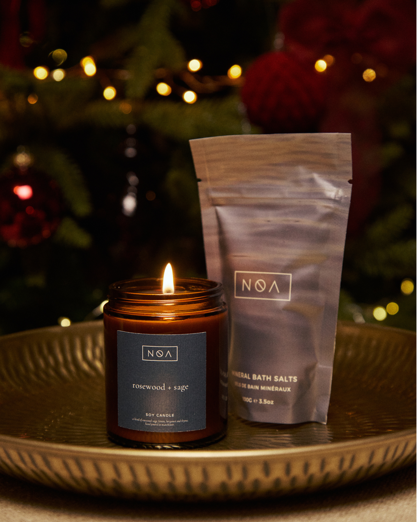Featuring two products for the ultimate calming routine and presented in reusable cotton bag, each set contains our favourite and bestselling Anxious Mind in mineral bath salt format and gift set exclusive candle Rosewood & Sage.
